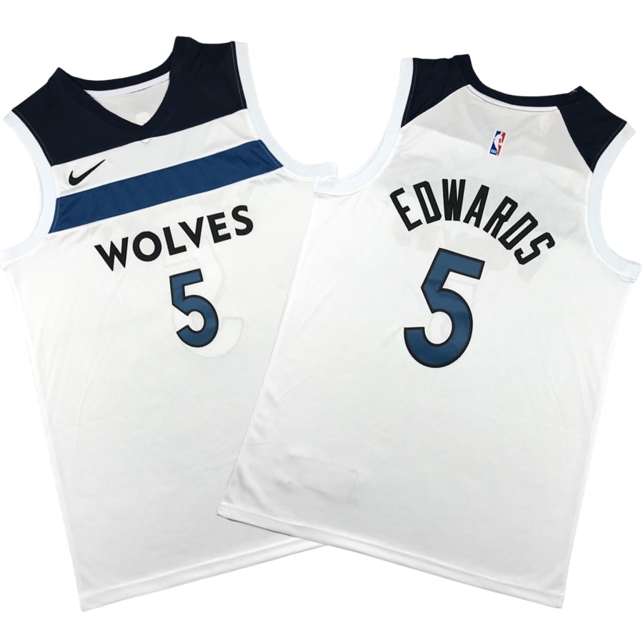 Elevate your game day wardrobe with this premium Anthony Edwards Minnesota Timberwolves basketball jersey. Featuring the iconic association white colorway, this garment showcases meticulous craftsmanship with fully stitched player names and numbers for a classic, professional aesthetic. The high-quality mesh fabric ensures maximum breathability and durability, making it perfect for intense pickup games or cheering from the stands. Designed with a tailored fit and athletic rib-knit trim, this jersey honors the explosive talent of number 5. Experience the perfect blend of comfort and team spirit with this essential piece of Minnesota fan gear, built to withstand every highlight reel moment of the season.
