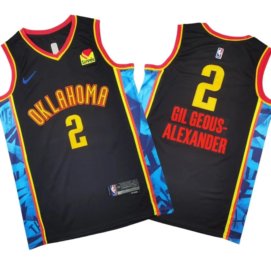 This 2024 City Edition black jersey features Shai Gilgeous-Alexander and his signature number 2 in a sleek, modern design. The black base is paired with distinctive City Edition styling that adds depth and character while keeping a refined overall look. Designed with a comfortable athletic fit, the jersey is suitable for everyday wear and inspired by on-court identity. Clean lines and thoughtful detailing reflect the visual language of the Oklahoma City Thunder, making this piece both contemporary and expressive.